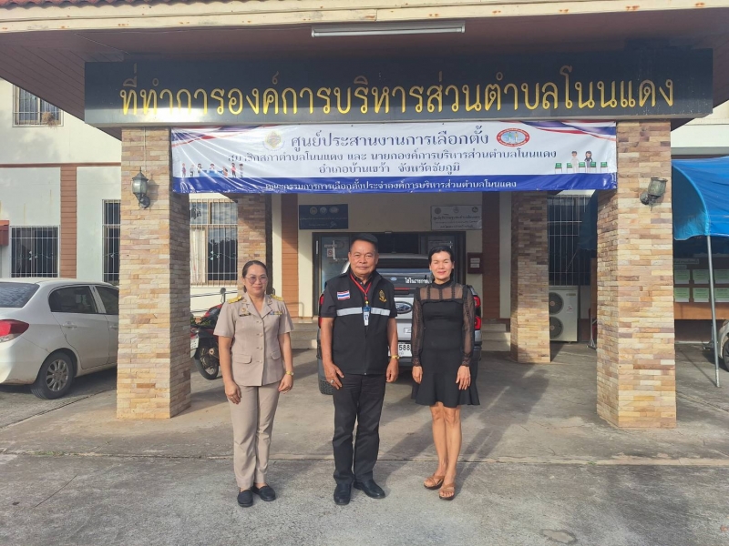 นางสาวนทกร สัญญาอริยาภรณ์ ผอ.กกต.ประจำ อบต.โนนแดง พร้อมด้วย กกต.ตำบลโนนแดง ลงพื้นที่ตรวจเยี่ยมหน่วยเลือกตั้งประจำตำบลโนนแดง