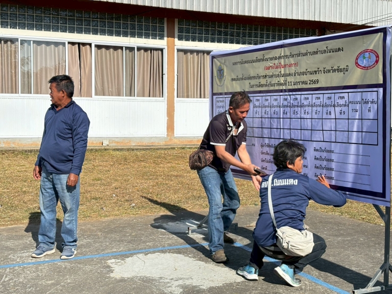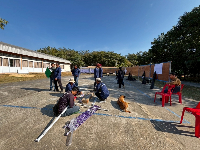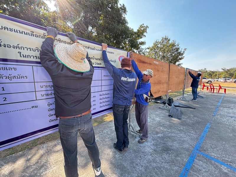 ประมวลภาพ เจ้าหน้าที่และพนักงาน อบต.โนนแดง ช่วยกันจัดสถานที่เตรียมงานเลือกตั้ง ในวันอาทิตย์ที่ 11 มกราคม 2569 นี้
