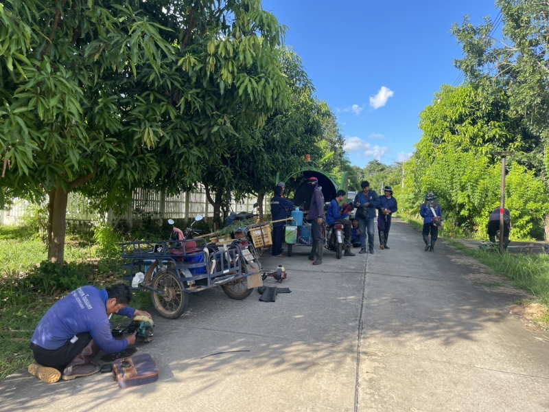 งานป้องกันฯ นำรถบรรทุกน้ำไปล้างทำความสะอาดบริเวณถนน 225...