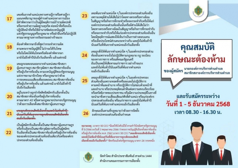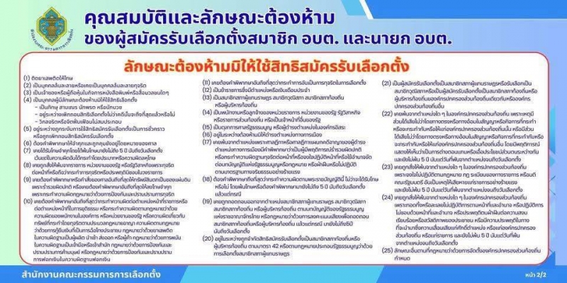 คุณสมบัติผู้มีสิทธิสมัครรับเลือกตั้งนายก อบต./สมาชิก อบต....