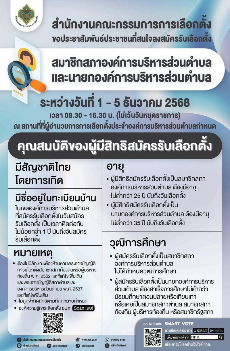 ประชาสัมพันธ์ สำหรับ ผู้ที่สนใจจะสมัครรับเลือกตั้งเป็น สมาชิก/นายก อบต. ...