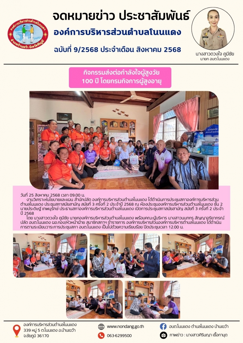 กิจกรรมส่งต่อกำลังใจผู้สูงวัย 100 ปี โดยกรมกิจการผู้สูงอายุ สำนักงานพัฒนาสังคมและความมั่นคงของมนุษย์จังหวัดชัยภูมิ