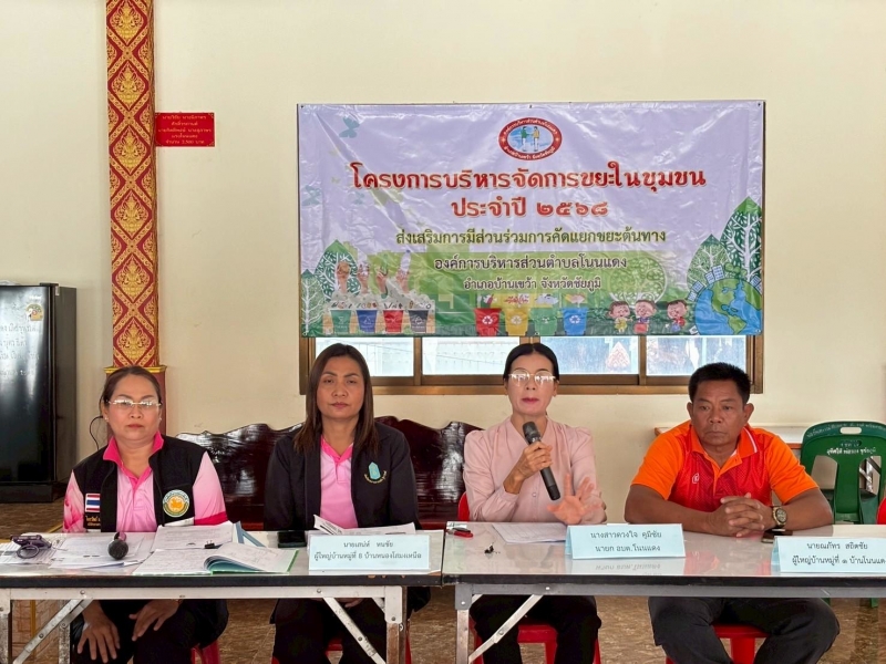 วันที่ 2 กันยายน 2568 เวลา 09.00 น.เป็นต้นไป ณ ศาลาการเปรียญวัดกลางโนนแดง องค์การบริหารส่วนตำบลโนนแดง นำโดย นางสาวดวงใจ คูมีชัย มอบหมายให้ รองนายกหนูแดง จอกเงินและเลขานุการนายก พร้อมด้วย ปลัดฯ ข้าราชการ พนักงาน ร่วมกับ ผู้ใหญ่บ้านหมู่ 1 บ้านโนนแดง ผู้ใหญ่บ้าน หมู่ 6 บ้านหนองบ่อ ผู้ใหญ่บ้านหนองโสมงเหนือ ม.8. ประชาชนทั้ง 3 หมู่บ้านพร้อมนี้ ร่วมกับ นางสาวเพียงกมล ดลเอี่ยม ปลัดอำเภอตำบลโนนแดง เพื่อเข้าร่วมโครงการบริการจัดการขยะในชุมชน ประจำปี 2568 มีการบรรยาย อธิบาย ทำความเข้าใจ ใหการคัดแยกขยะที่ต้นทาง ปลัดองค์การบริหาร ส่วนตำบลโนนแดง ได้ชี้แจง อธิบาย กฎกระทรวง เรื่อง กำหนดอัตราค่าธรรมเนียมขยะ และยกเว้นค่าธรรมเนียมเกี่ยวกับการจัดการสิ่งปฏิกูลและมูลฝอย ประกาศในราชกิจจานุเบกษา หน้า 64 เล่ม 141 ตอนที่ 71 ก วันที่ 22 พฤศจิกายน 2567 ข้อ 1 กฎกระทรวงนี้ให้ใช้บังคับใช้เมื่อพ้นกำหนด 360 วันนับแต่วันประกาศในราชกิจจานุเบกษาเป็นต้นไป (17 พฤศจิกายน 2568) และ ข้อญัตติองค์การบริหารส่วนตำบลโนนแดง ตามกฎกระทรวงฯ มติในที่ประชุม ขั้นต่ำสุด 40บาท ต่อ เดือน กรณี ทำบันทึกข้อตกลง คัดแยกขยะ 5 ประเภท และ ชำระ 6 เดือน ต่อครั้ง 2 ครั้ง ต่อปี