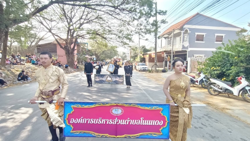 นำโดย นางสาวนทกร สัญญาอริยาภรณ์ ปลัด อบต.โนนแดง ปฏิบัติหน้าที่ นายก อบต.โนนแดง พร้อมด้วยข้าราชการ พนักงาน อบต.โนนแดง กำนัน ผู้ใหญ่บ้าน ผู้นำชุมชน และประชาชนตำบลโนนแดง เข้าร่วมขบวนแห่ของตำบลโนนแดง ซึ่งขบวนประกอบด้วย รถแห่บายศรี คณะผ้าป่ากำนันผู้ใหญ่บ้าน