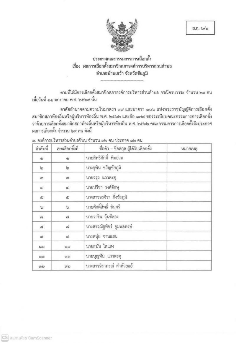 ???? #ประกาศคณะกรรมการการเลือกตั้งรับรองผลการเลือกตั้งสมาชิกสภาและนายก อบต.โนนแดง ตามที่ได้มีการเลือกตั้งสมาชิกสภาองค์การบริหารส่วนตำบลและนายกองค์การบริหารส่วนตําบล (อบต.) ในเขตอำเภอบ้านเขว้า จังหวัดชัยภูมิ เมื่อวันอาทิตย์ที่ 11 มกราคม 2569 ที่ผ่านมานั้น