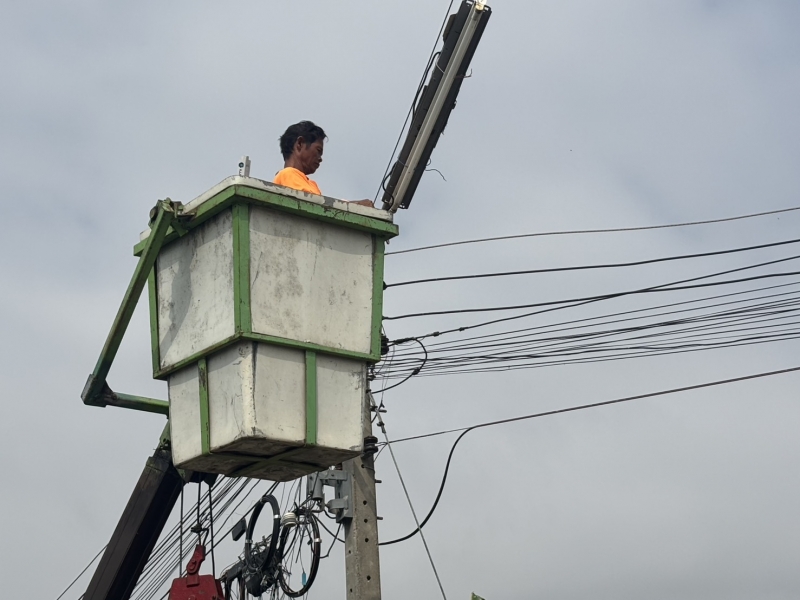 กองช่าง ออกซ่อมแซ่มไฟฟ้าส่องสว่างสาธารณะ หมู่ที่ 9 ต.โนนแดง