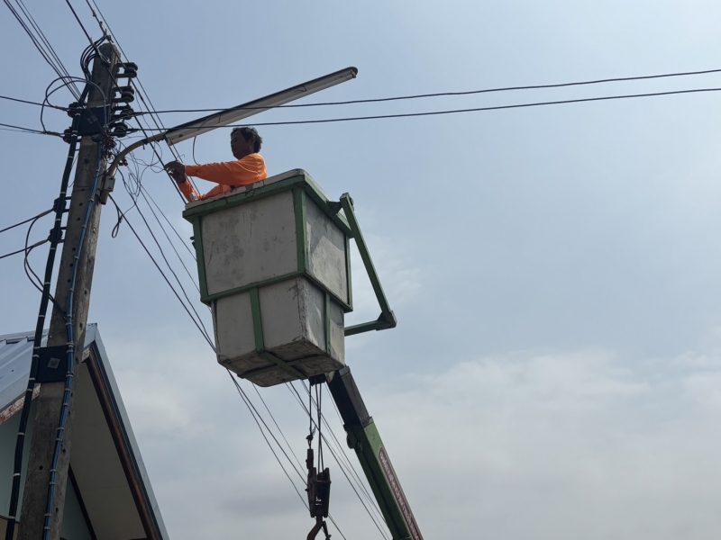 กองช่าง ออกซ่อมแซ่มไฟฟ้าส่องสว่างสาธารณะ บ้านหน่องบ่อ หมู่ที่ 6