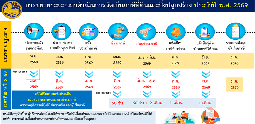 ติดป้ายประกาศประชาสัมพันธ์ติดตามแต่ละหมู่บ้าน เรื่องภาษีที่ดินและสิ่งปลูกสร้าง ภาษีป้าย ค่าธรรมเนียมและใบอนุญาต ประจำปีงบประมาณ 2569...