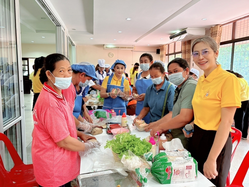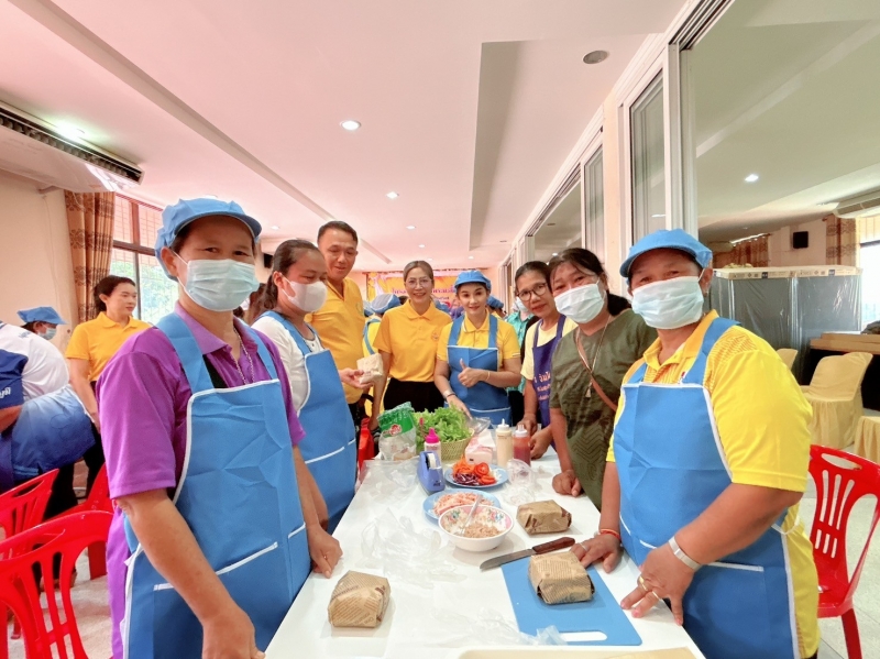 #การทำแซนวิชสไตส์เกาหลี พร้อมคณะผู้บริหาร สมาชิกสภา อบต.โนนแดง และผู้นำชุมชนทั้ง 9 หมู่บ้าน นางสาวนทกร สัญญาอริยาภรณ์ ปลัด อบต.โนนแดง ในนามคณะผู้จัดงานได้กล่าวรายงานวัตถุประสงค์ โดยกลุ่มเป้าหมายเป็นประชาชนในพื้นที่ตำบลโนนแดง